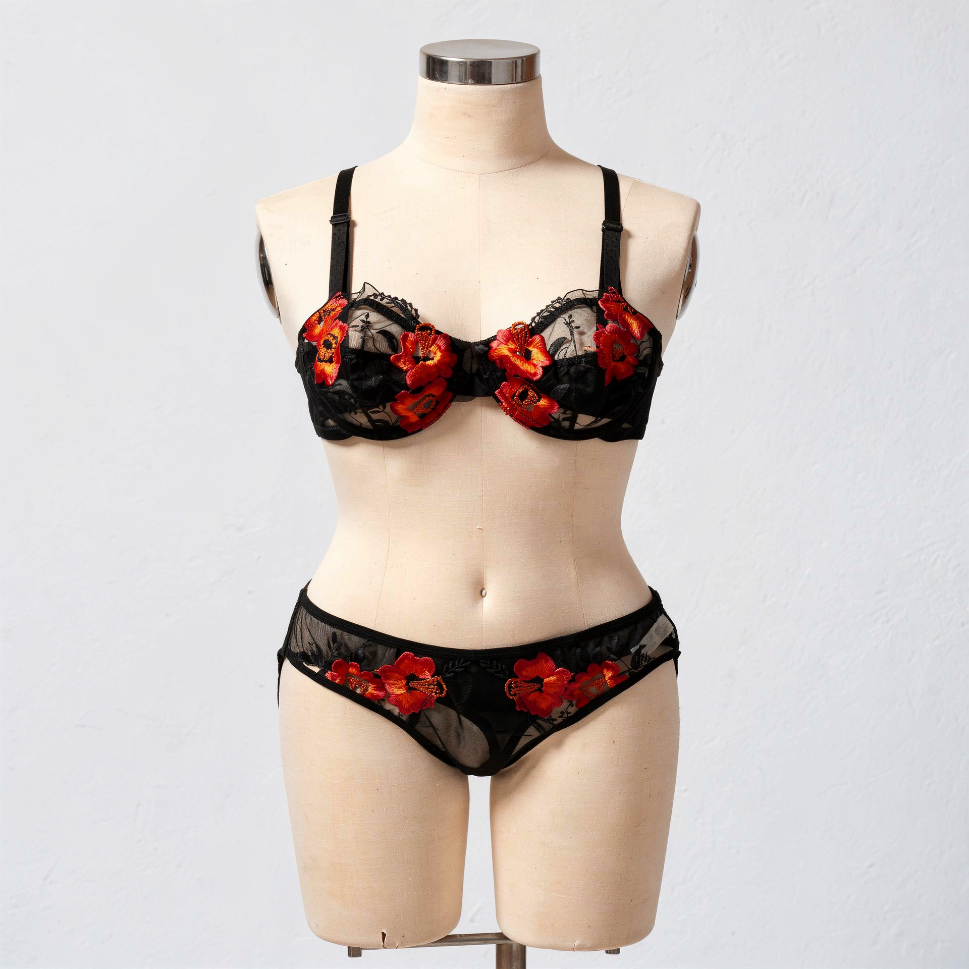ست شورت و سوتین تورگاز فنردار مشکی گلدوزی شده برند نوشه